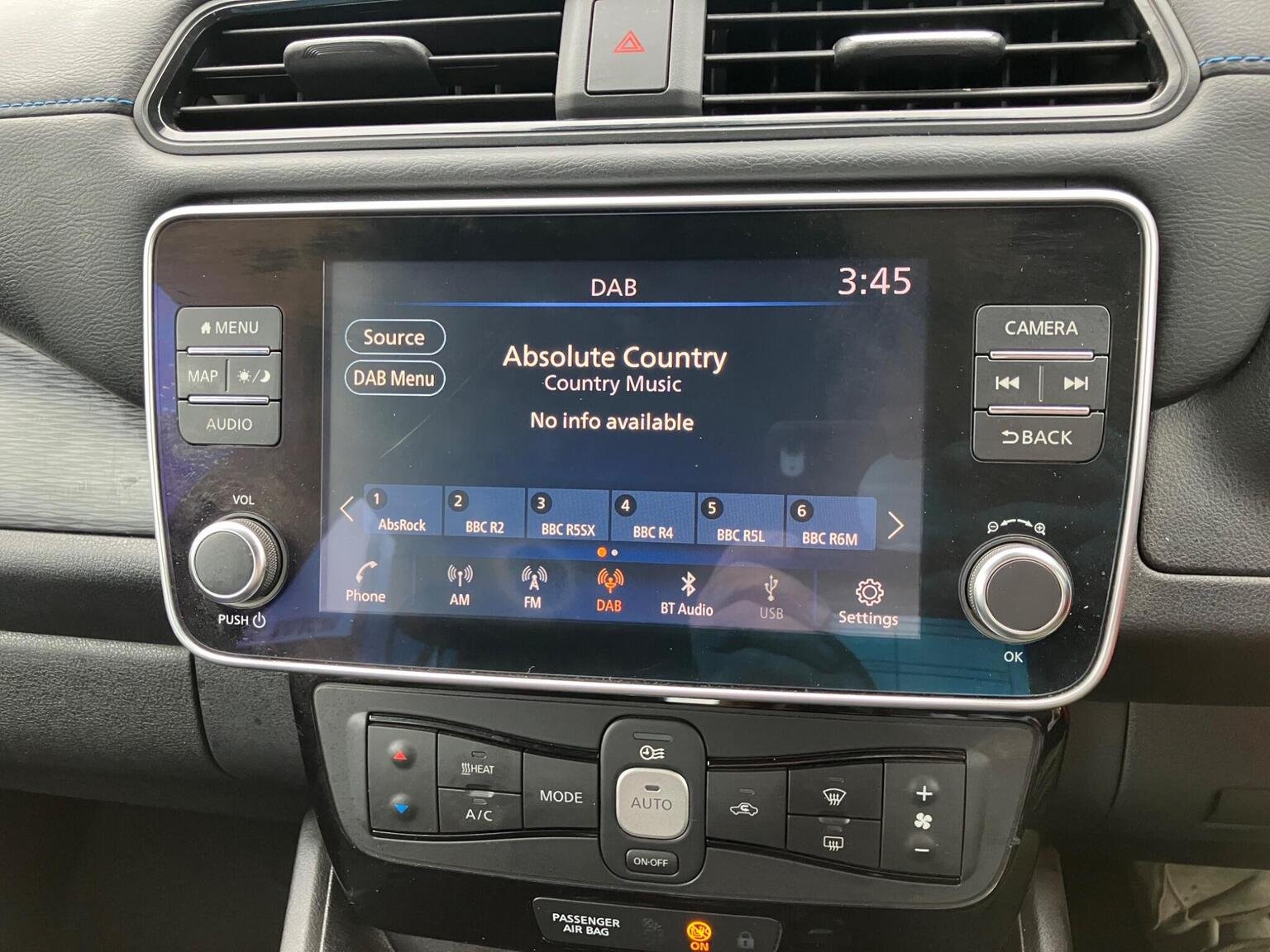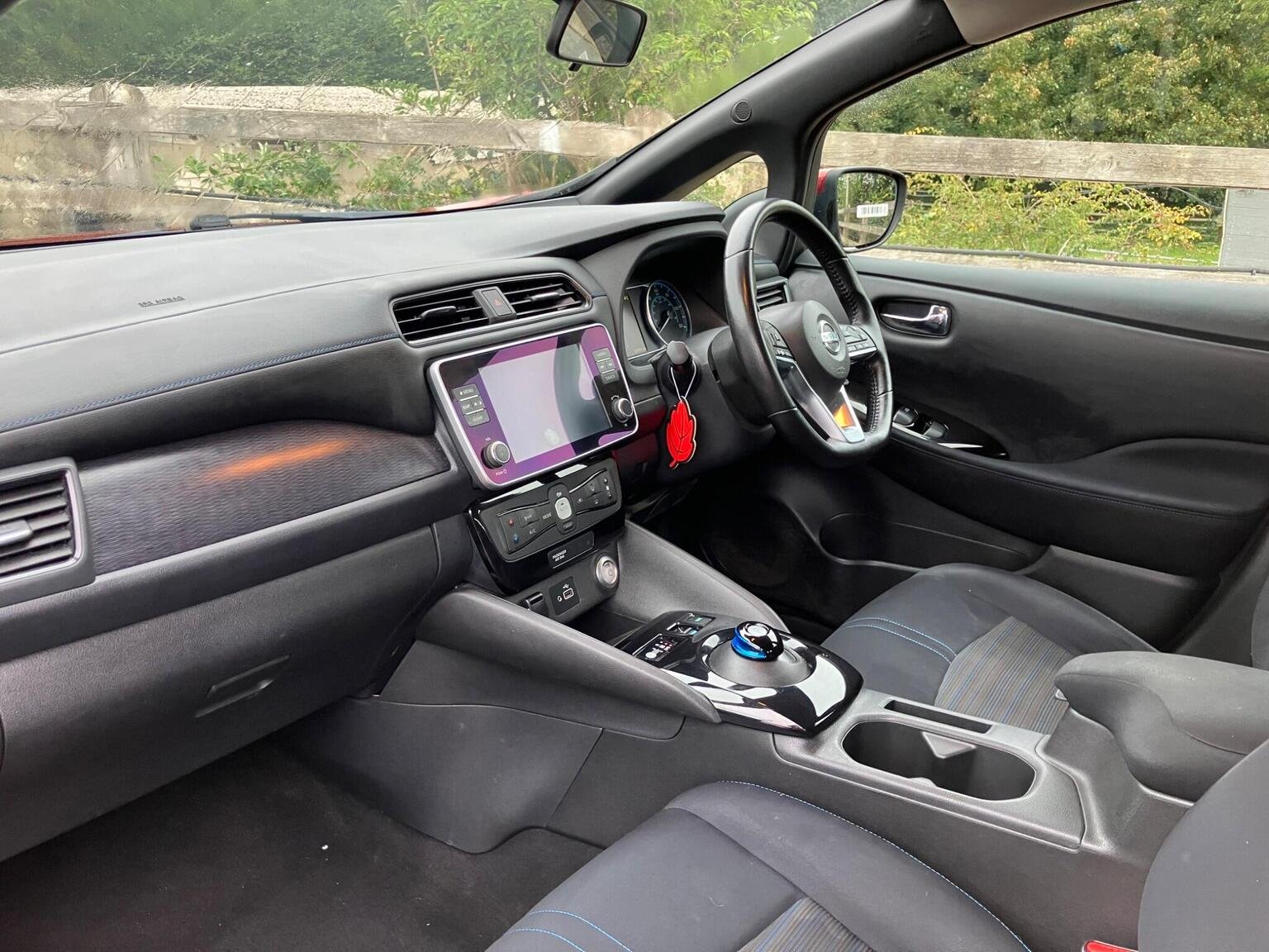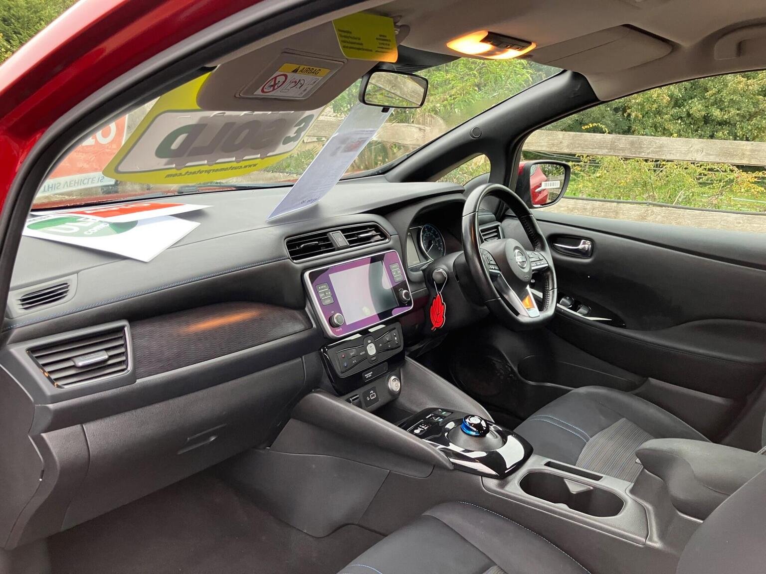 1 USB Port, 12V Socket, 16in Alloy Wheels, 6 Airbags, 6.6kW AC On Board Charger, ABS with EBD, Alarm - Thatcham, Audio System with 6 Speakers, Auto Hazard Lights, Auto Rain Sensing Wipers, Automatic Headlights - Dusk Sensor, Body Coloured Door Mirrors, Brake Assist, Door Handles - Chrome, E-Pedal, ESP - Electronic Stability Programme, EV Connect Telematics System, EVSE 6M or Mode 3 - 6M, Electric Folding Door Mirrors, Electric Speed-Sensitive Power Steering, Faster Heater, Follow Me Home Headlights, Forward Emergency Braking with Pedestrian Recognition, Front Fog Lights, Front Seat Back Pockets, Front and Rear Electric Windows, Halogen Headlamps with LED Signature, Hill Start Assist, I-Key and PES, ISOFIX on Rear, Integrated Turn Signals in Mirrors, Intelligent Cruise Control, Leather Steering Wheel, Manually Adjustable Drivers Seat - Slide - Recline and Lifter, Manually Adjustable Passenger Seat - Slide and Recline, Nissan Connect 2 Kai2 Navi with DAB and Apple Carplay - Android Auto, Nissan Connect EV, Nissan Connect EVO 7in Touchscreen Navigation and Entertainment System, Quick Charger Capacity, Rear Lamp Styled LED, Rear View Mirror with Manual Dimming, Speed Limiter, Tilt Adjustable Steering Wheel, Trip Computer